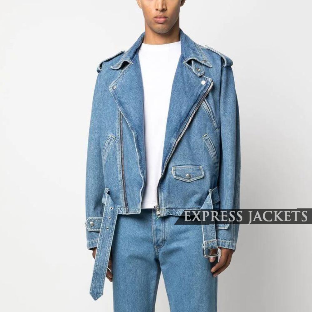 Men’s Denim Belted Waist Biker Jacket — Sturdy, Fashionable & Adjustable