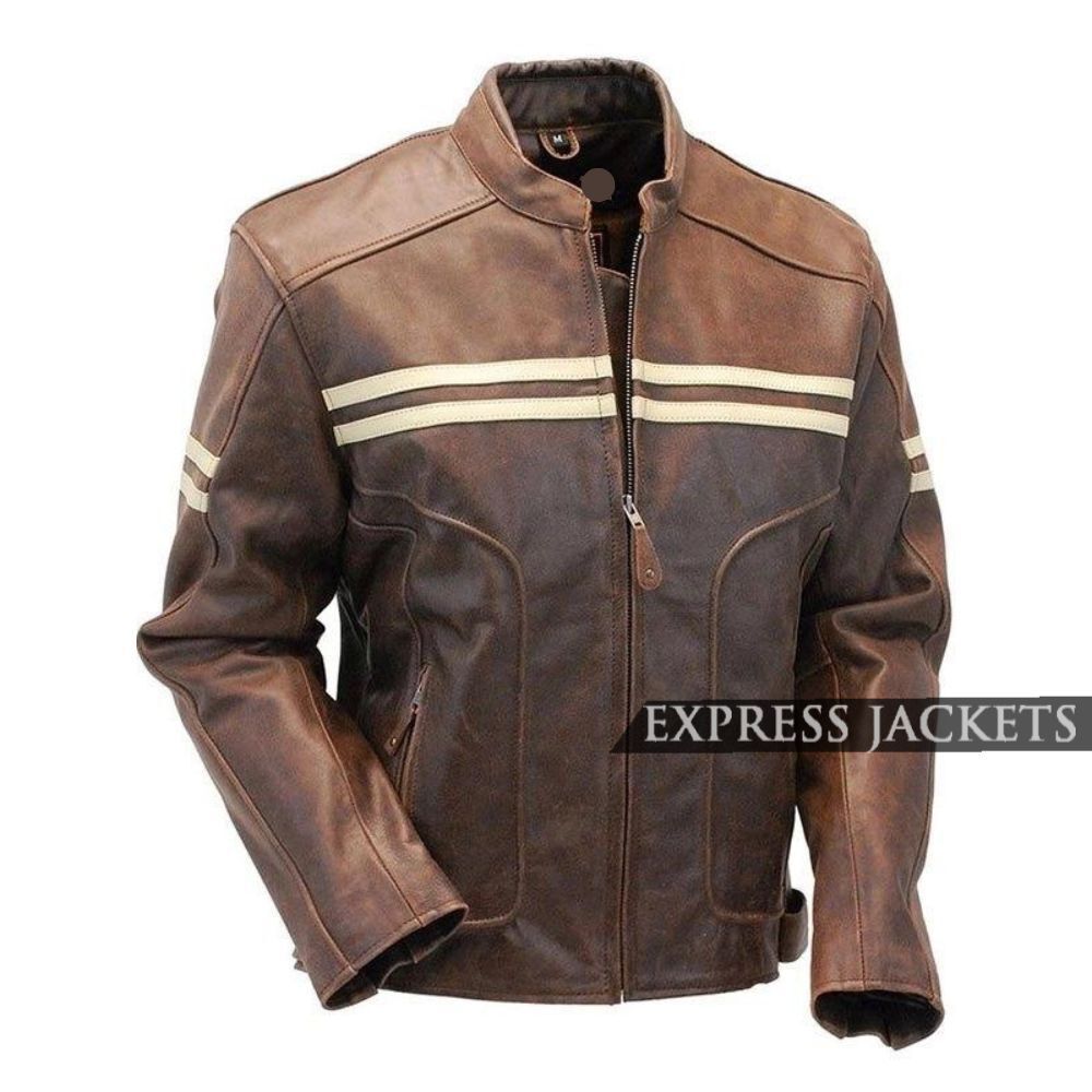Men's Brown Stripes Leather Biker Jacket £115.00 – £161.00Price range: £115.00 through £161.00