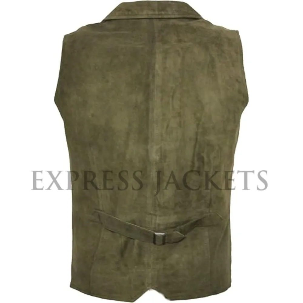 Earthy Elegance: Men’s Olive Green Suede Leather Vest