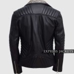 Black Spiked Pattern Biker Leather Jacket For Men
