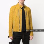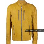 Sulphate-Yellow Sheepskin Leather Jacket For Men – Strong Stand Collar Zip-Up Outerwear