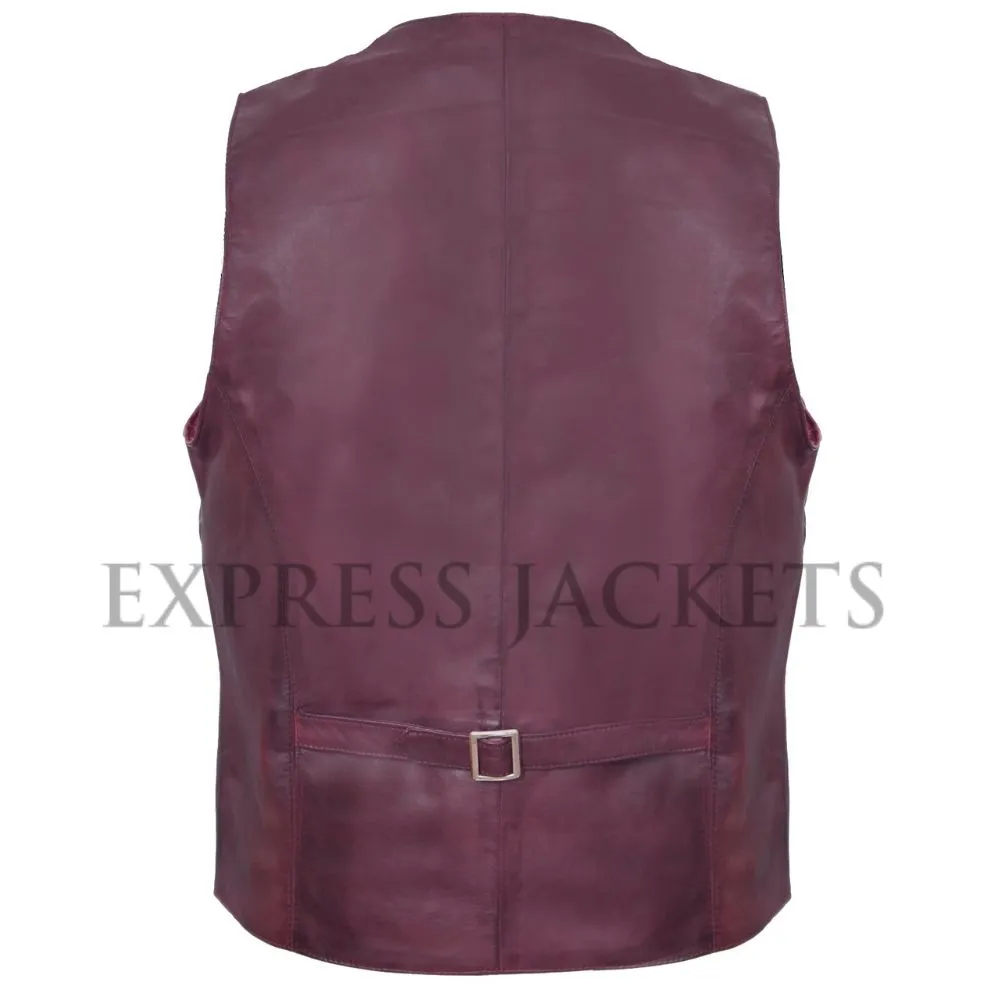Traditional Men’s Burgundy Leather Waistcoat