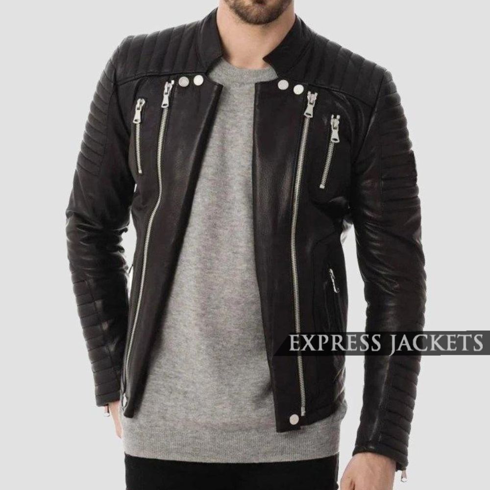 2 reviews for Men’s Zipper Pockets Quilted Leather Jacket