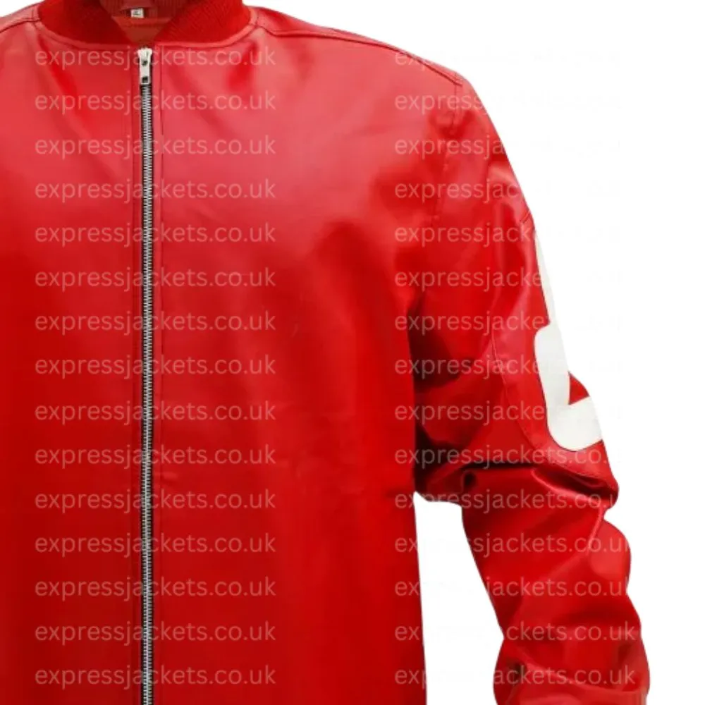 Crafted of premium faux and real leather this red leather bomber jacket which also includes a viscose inner lining which will have you reaching for it daily. It’s a piece that will see you through the test of time. It includes a YKK zipper front closure for secure and easy wear also we have a ribbed knit collar which gives it a sporty modern touch. The jacket has full length sleeves which at the cuffs are rib knit for a close fit. In terms of function it has side and inside pockets which in turn provide great storage for your every day items. Also the red color is very bold and draws the eye to the piece.