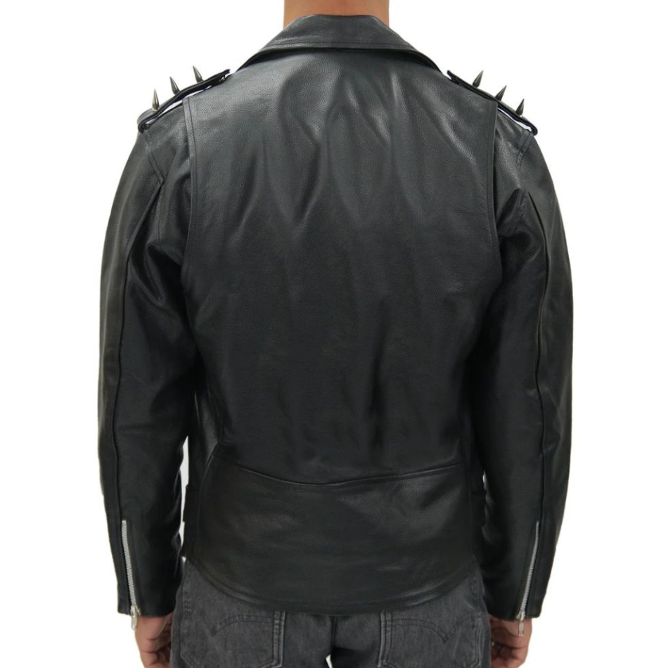 The features of all leather jackets are identical, but the design, detailing, and stitching make them different. A fashionable man usually has so many of these staples. However, he still looks for new arrivals because he knows that wearing an upper in winter can instantly change his persona. If you have already tried a superficial top layer, change your mind and check out this Men’s Black Leather Biker Zipper Jacket. It is a beautiful outer layer for fashion lovers. The top layer has specific attributes, but its shoulder spikes are unavoidable. We present this fashion piece in black color and utilize high-quality supple leather with viscose lining. This outfit comes with a lapel collar, front zipper, and full sleeves. As the bikers pay special attention to the pockets, there are four outside and two inside places. The waist belt is a different thing that is crucial while riding.