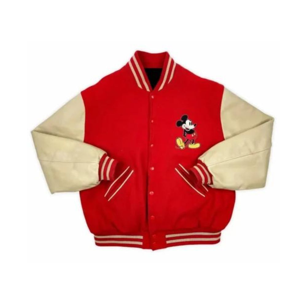 The bold red and beige color palette strikes the perfect balance between vibrancy and sophistication. Effortlessly pair it with your favorite jeans or dress it up for a night out – the Mickey Mouse Varsity Jacket is as versatile as your imagination.
