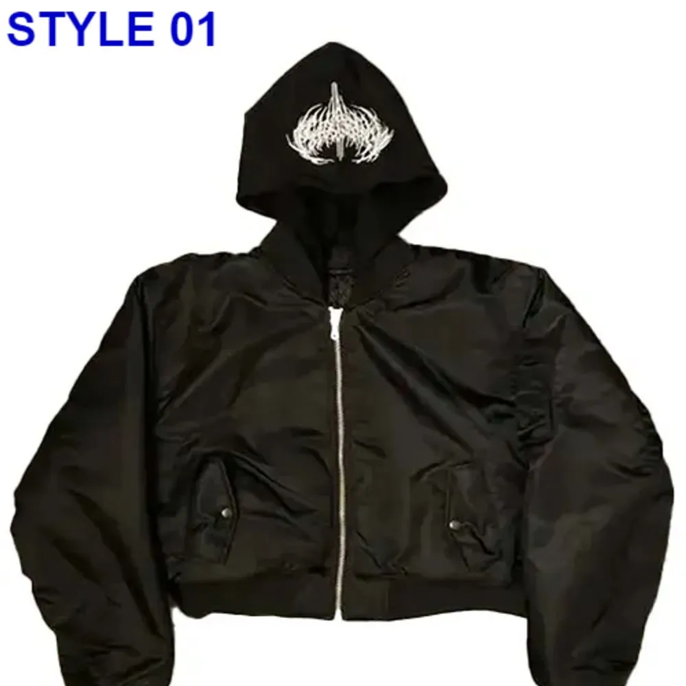 Elevate your street style with the Narcissist Hoodie Bomber Jacket which is a modern take on outerwear for the fashion forward. Made from luxury satin and lined with soft viscose this jacket is at once light and put together. It has a zip up feature which adds to its trendy appeal and also includes a removable hood in Style 01 which you can use to go from very casual to more put together looks. Also available in a ribbed collar which gives you even more choice in how you wear it. Designed in a classic black colorway this bomber jacket goes great with jeans, overalls or joggers which makes it ideal for casual dates, travel or as a piece to create that street wear look out. From the ribbed cuffs which close tight around the wrist to the full length sleeves that are built to last, to the 2 front and 2 inside pockets that keep your things secure, which also double as a fashion element. If you like the easy going look of a hood or a clean cut ribbed collar the jacket gives you that option and you get that best of both trends.
