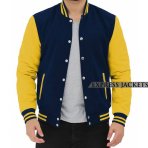 Men’s Navy Blue and Yellow Wool Letterman Jacket
