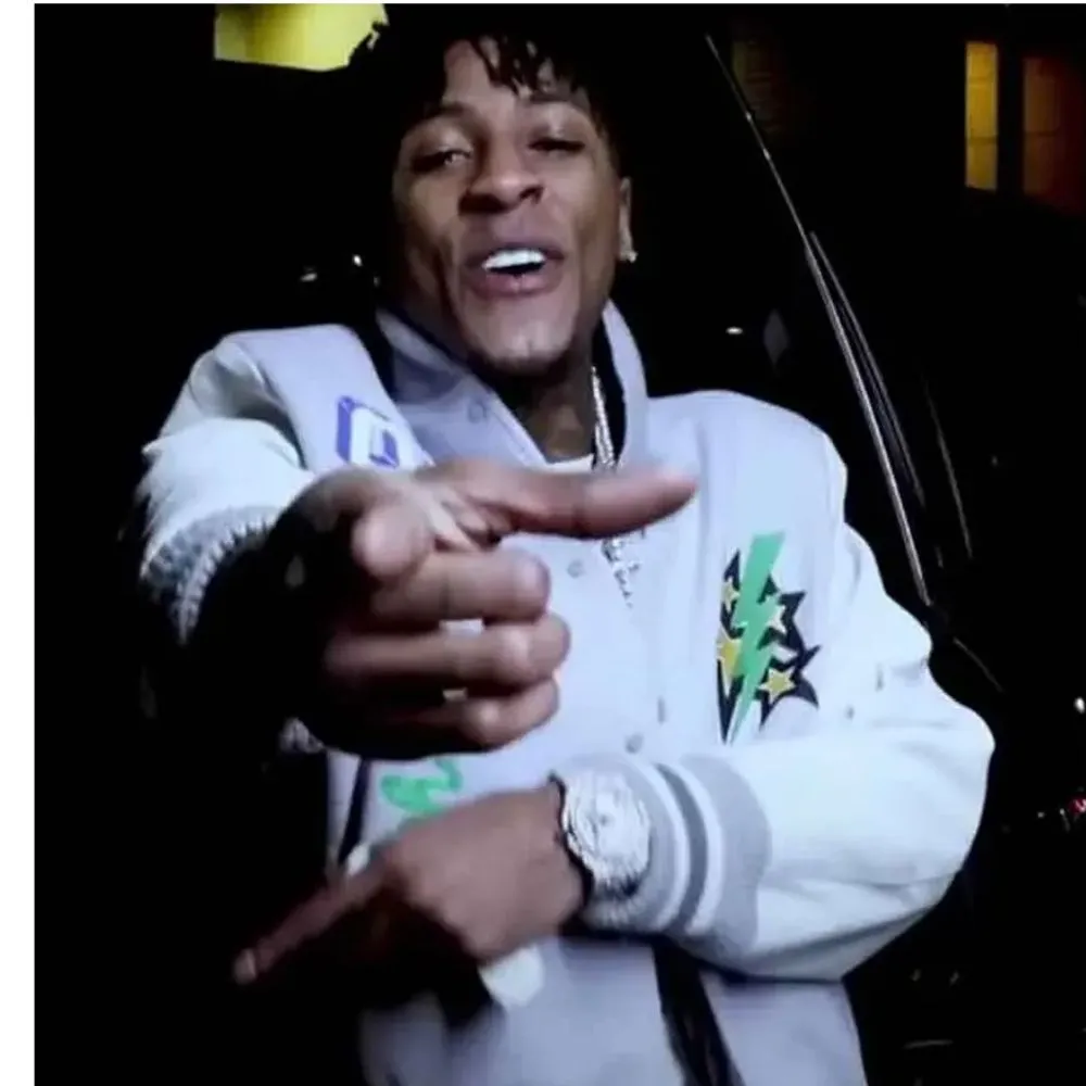 Bring in a bold streetwear vibe to your wardrobe with the YoungBoy Lil Durk NBA Varsity Jacket which is a great mix of hip hop and classic varsity styles. Made from high quality wool and featuring real leather sleeves this jacket is built for durability, warmth and also designed for long term wear. The soft viscose lining is very wearable for long periods of time and the snap front tab and stand up collar add a sporty touch. Ribbed at the cuffs and bottom hem it has a fitted look which also plays into the classic varsity look. In a large white and gray scale this jacket also has NBA YoungBoy art work on the front and back which pays homage to music and street culture. Also with four total pockets which are on the inside and out — it is practical as well as stylish. Whether you are at a show, out on the town, or just supporting your favorite artist this YoungBoy varsity jacket is the perfect statement piece.