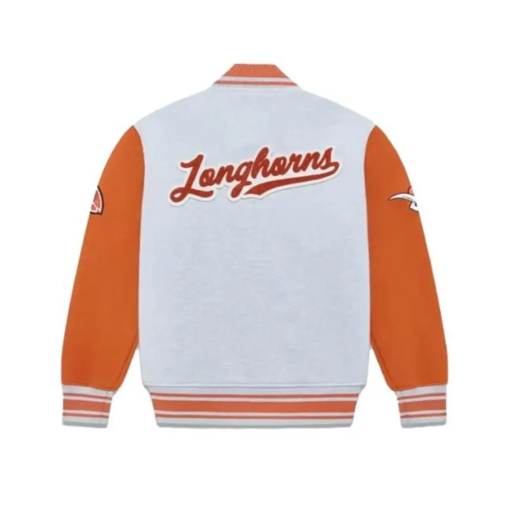 NCAA OVO Texas Longhorns Varsity Orange & White Jacket – A Great Combination of Bold Pride and Classic Streetwear