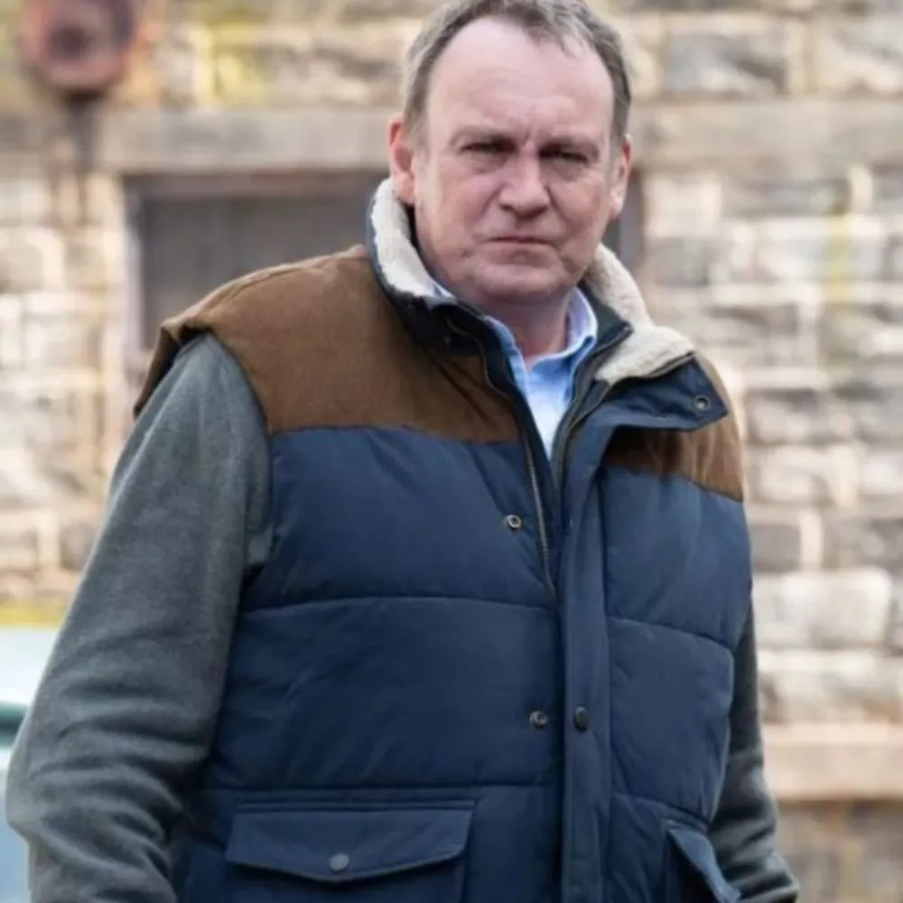 Philip Glenister After The Flood 2024 Brown and Blue Parachute Vest