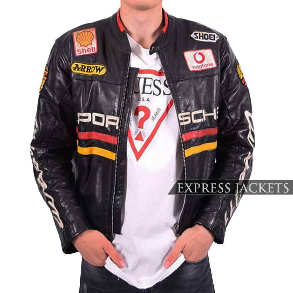 Porsche is a famous brand of leather jackets and coats. This costume is an iconic, and signature outfit made from the best grade leather material to give pleasant attire. Internally it has been lined with a soft and comfy viscose lining that makes it a loveable outfit to wear. The front look of this top layer is polished with a fabulous snap tab collar followed by a classy and comfy zippered closure. The sleeves of this “Porsche 930” style are trimmed to full length with room, open hem cuffs that enable comfortable layering. There are various logos placed at the whole front and back of the outerwear. The patterns of Racing and Porsche make it sturdy to wear. Get this black color stylish costume at a good introductory price with free worldwide shipping.