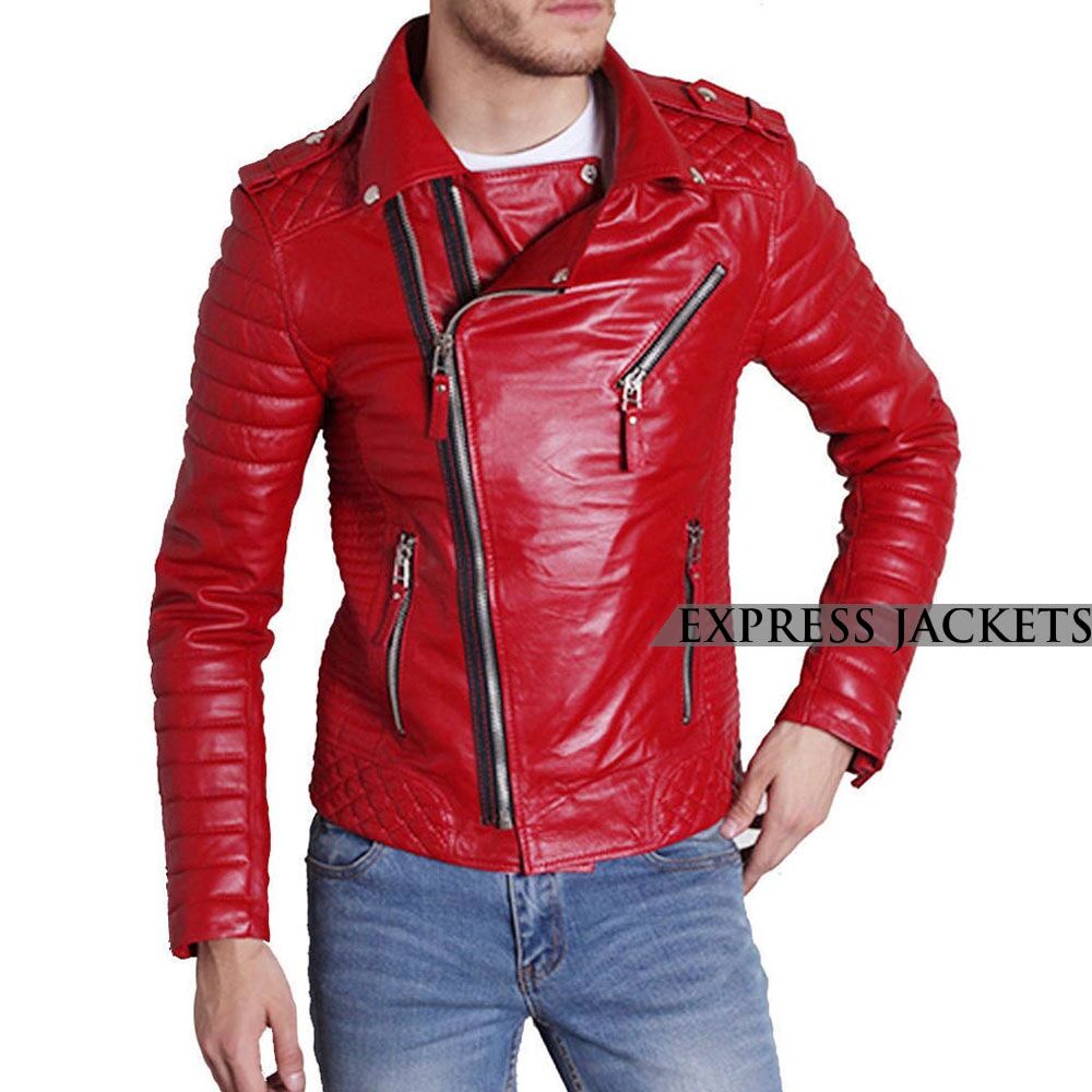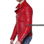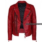 This winter, we all expect too many cold days and nights; predictably, most of the nights will hit below zero. Most probably, some of you have done the winter shopping, but some of you are still busy searching for the latest fashion of leather jackets. For men, the Red Biker Jacket with Padded Sleeves is an inevitable product because it is warm and stylish both. If you hit the street most of the time, this upper will ensure you have a secure traveling plan. It is available in top-notch leather and viscose lining; both materials indulge in each other and exceed the level of security. It has padded sleeves that appear as a strong windbreaker. Its beautiful red color is fantastic and enhances manly vibes. The design is captivating as follows with a diamond quilted pattern. The lapel collar of this costume is a decent feature that helps in balancing the ensemble. The top layer also has an asymmetrical front closure and full sleeves with zippered cuffs and pockets.