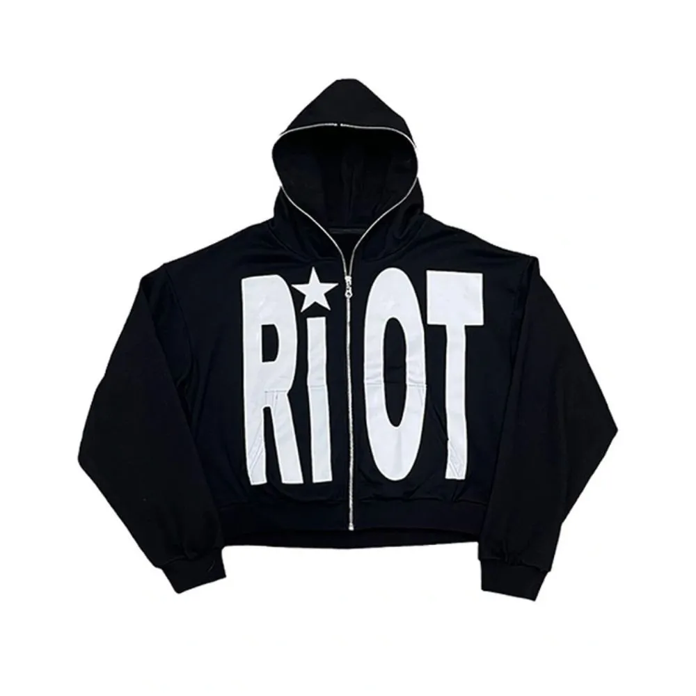 Riot Black Zip-Up Hoodie – an Essential Streetwear Staple