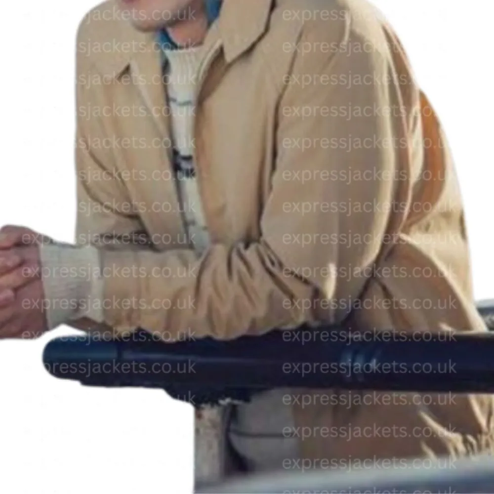 From Ritchie Tozer’s design in It’s a Sin which really stood out we took inspiration for this Beige Cotton Jacket which we put a modern twist on. We designed it for a very wearable, retro look. Also it has a very clean design and neutral tone which makes it a very versatile piece for any day wear.