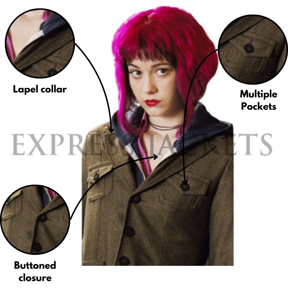 Scott Pilgrim vs the World Ramona Flowers Cotton Jacket Inspired by Mary Elizabeth Winstead’s character, this Scott Pilgrim vs the World Ramona Flowers Jacket is a favorite amongst fans. This made of premium cotton designed both style and comfort. It has a lapel collar, full sleeves with belted cuffs and several inside and outer pockets for functionality. The color is similar to images—it was a perfect match. Available in every size, this jacket is a must-have in anybody’s closet.