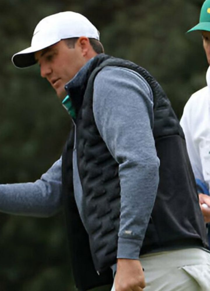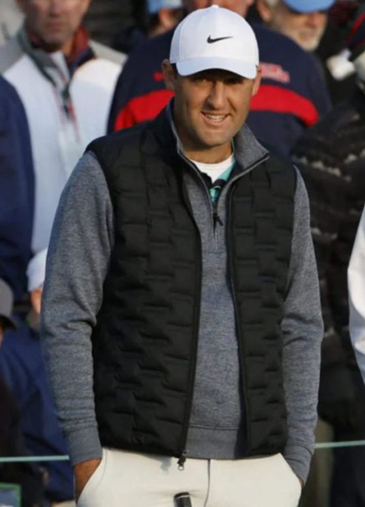The 2024 Scottie Scheffler Black Quilted Puffer Vest. Made from parachute fabric, this vest provides warmth without compromising on weight. It has soft viscose in lining for comfort and smooth zipper closure at the front. The Stand collar vest will add a fashionable touch to the rest of your looks. Because it was designed to be sleeveless, it lends a modern and versatile look. Moreover the waist pocket on otuside of the vest has been made with two sides while internal two pockets have also been used in fellowship with the vest. Its classic black hue makes it easy to match and a staple in every wardrobe.