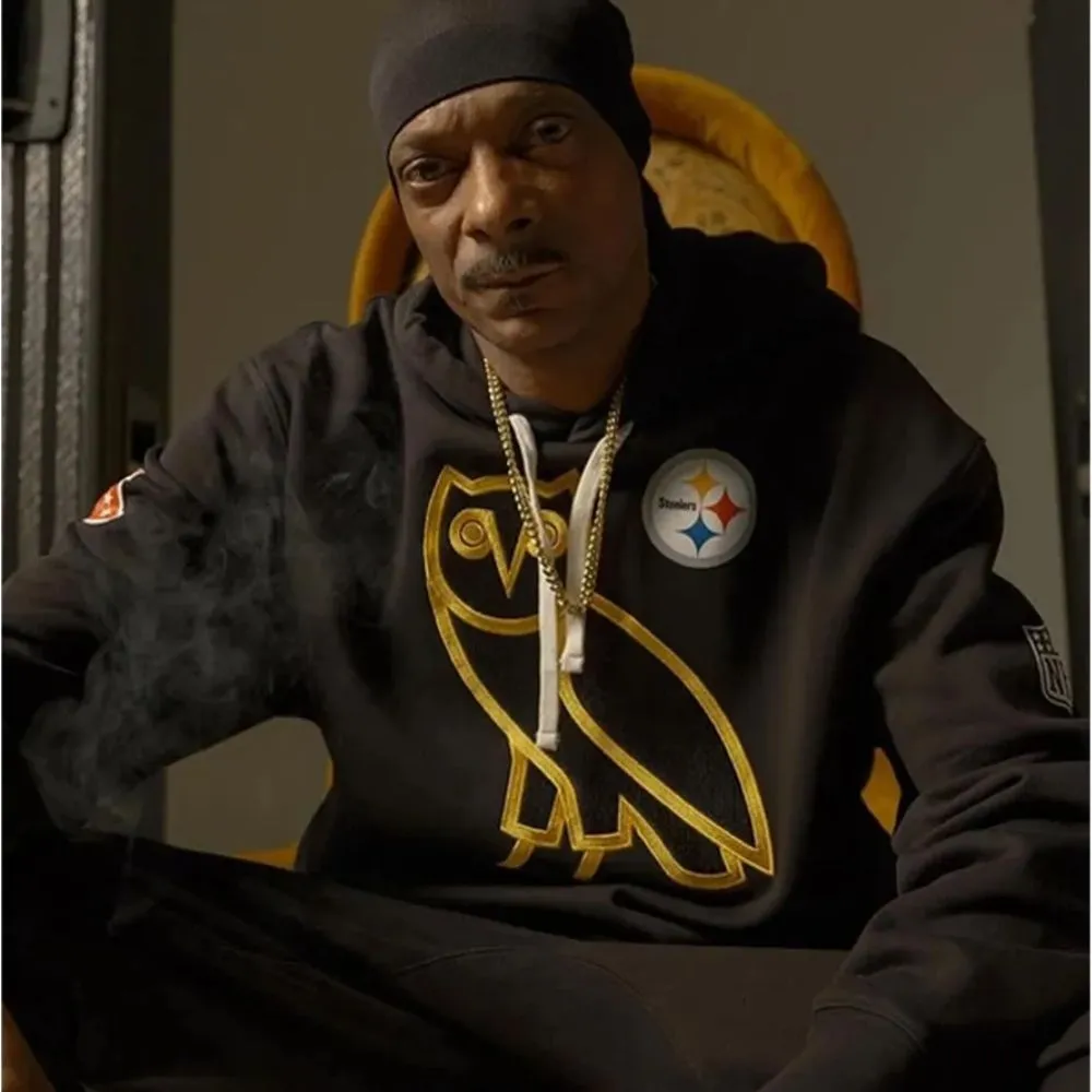 Show off your support for the Pittsburgh Steelers and your love for hip hop in our Snoop Dogg OVO Hoodie which weaves sportswear and streetwear together. We’ve used premium fleece material with a soft viscose lining which not only warms but also is very durable and comfortable. The hood is pull over and the ribbed cuffs with hemline provide a close fit that also gives a classic touch. Also adding to the high quality is the fine stitching. This piece also has 2 inner and 2 outer pockets so it is as functional as it is fashionable. In a bold black colorway the design is finished off with Pittsburgh Steelers and Snoop Dogg OVO inspired graphics on the front, back and sleeves which really brings a statement look that pays homage to music and football. Whether you are at the game supporting the team, out in the community or just lounging around this hoodie is a must have for super fans of both the Steelers and Snoop.