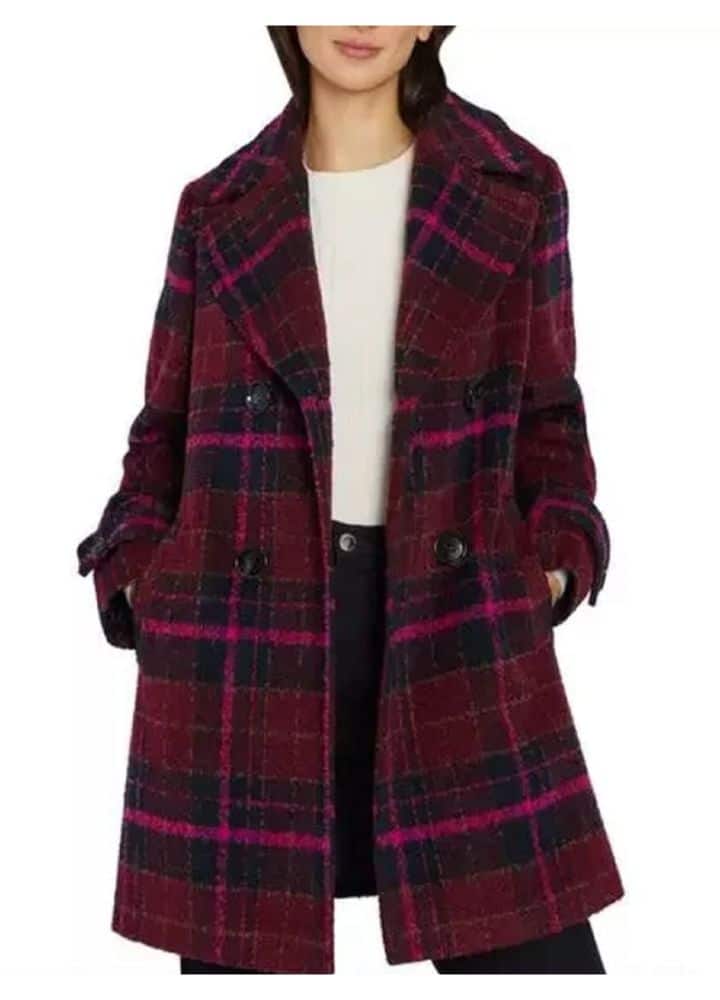 The Murder In A Small Town Stana Katic Pink Plaid Wool Coat is stylish outerwear, ideally suited for the women who wish to dominate the world. Made from high-quality wool fabric, this long wool coat can help keep you warm and make you look chic in the cold months. Soft viscose lining for a comfortable fit all-day long The double-breasted button-style closure gives this coat a vintage, sophisticated look. The lapel-style collar gives it a traditional feel, and long sleeves with round cuffs highlight its tailored shape. It has two outside pockets and one inside pocket so you can take your essentials without compromising on style. The pink plaid coloring provides a sweet, stylish feminine accent, and one less thing that’s identical to everyone else’s.