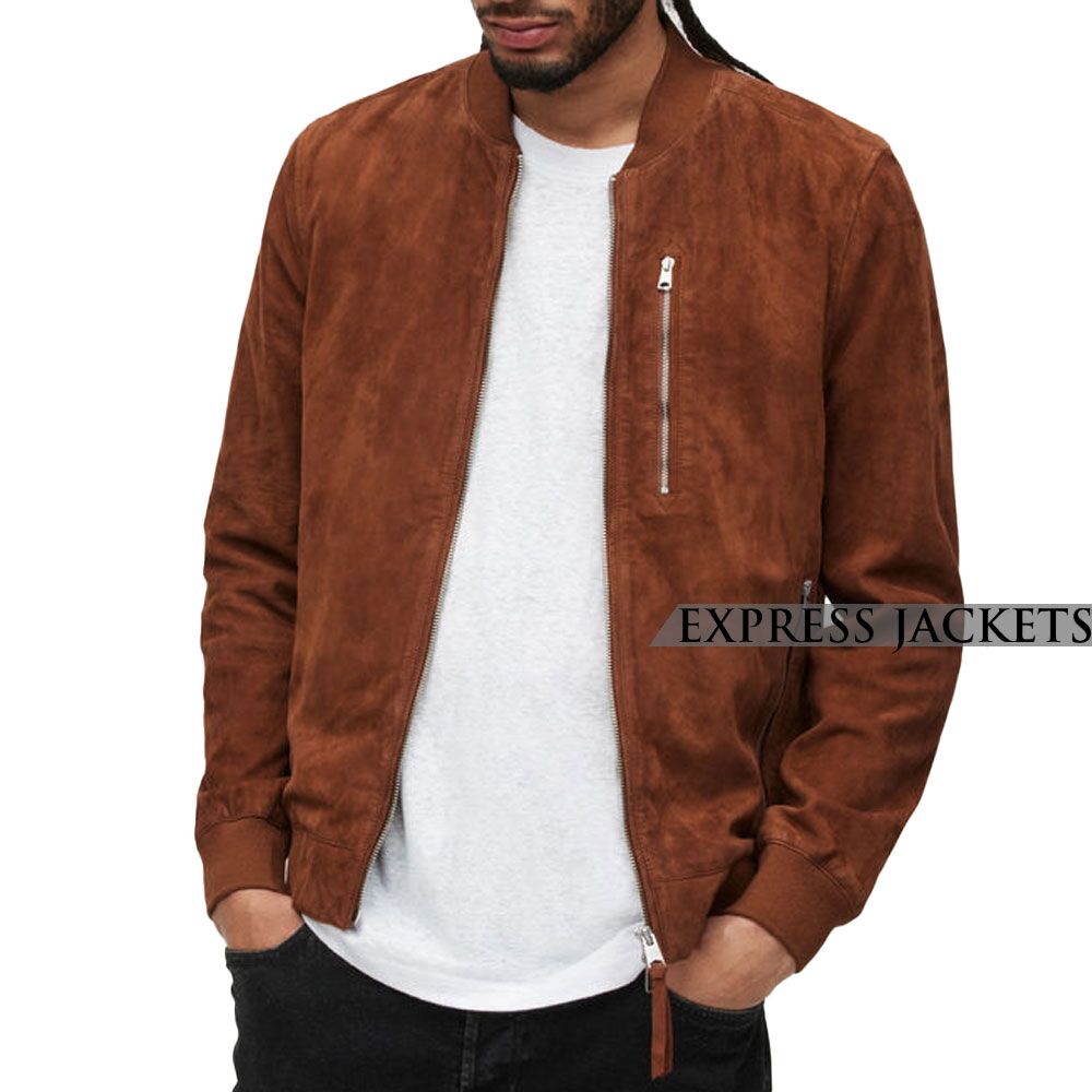 Wearing plain brown and black is now an old-fashioned practice that fashionistas do not consider noteworthy anymore because many new colors have been introduced in the fashion industry that can replace the typical hues very easily. This Suede Brown Bomber Jacket is a sophisticated look for guys, and it is a unique walnut shade that is both practical and stylish. The upper is available in suede leather, which considers the best material for winter, its qualities of giving warmth and softness never compromise. The fashion piece also has an internal lining, which we made with viscose fabric, and it gives a supple and comfortable wearing time when combined with Suede. The top layer has a ribbed collar, cuff, and waistline, as these are the compulsory features of a bomber, and a jacket cannot be complete without them. Its other highlights are full sleeves, a front zipper, and pockets.