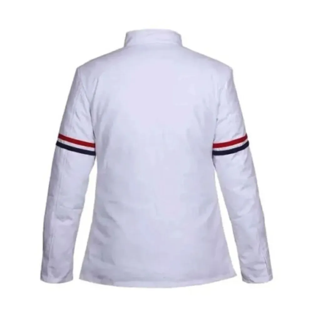 Bring grace to your wardrobe with the Thom Browne Chef White Cotton Coat which is a mix of functionality and design. Out of high quality cotton with a smooth viscose lining this coat which is a piece of art for daily wear. The stand up collar and front button closure give it a sharp tailored look which is paired with the clean white color that brings out its classic beauty. Also it has two front pockets and one inside pocket which brings together style with function thus it is great for formal as well as casual settings. With full length sleeves this Thom Browne inspired coat gives you full coverage which is great for layering through the four seasons.