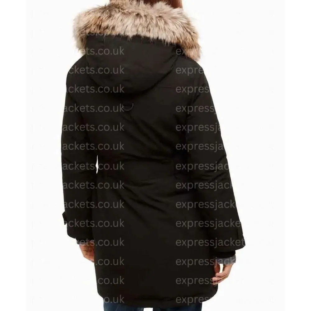 For best results dry clean only. This will preserve the fur hood and maintain fabric quality.
