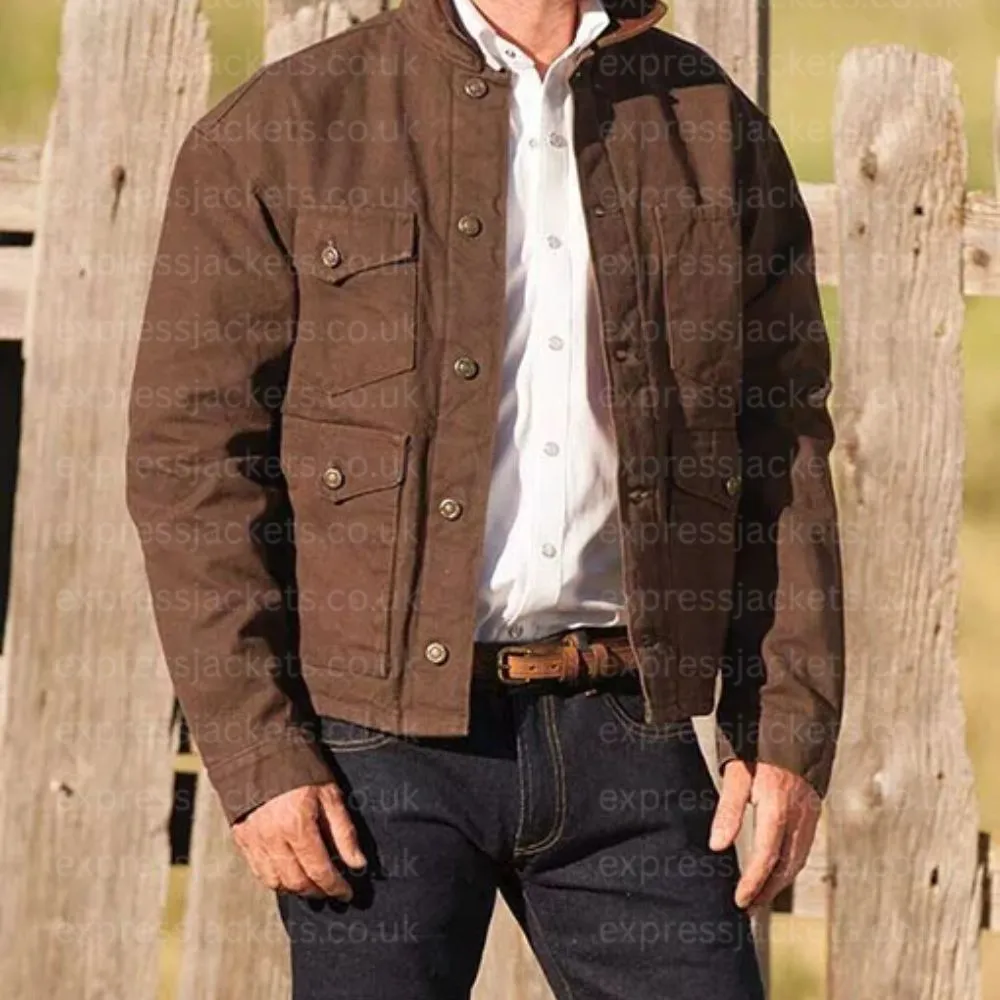 This cowboy jackets for men is crafted of premium cotton for durability and breathability. The soft interior lining which is a feature of this piece allows for all day wear, also the front button closure which is a classic detail secures it in place. We have gone with full length sleeves and a shirt style collar which brings out that true western jackets look. Also we see 4 front flap pockets which add to the functionality as well as the rugged appeal of the western jackets and the rich brown color which we have used is very much a classic choice for a timeless cowboy style.