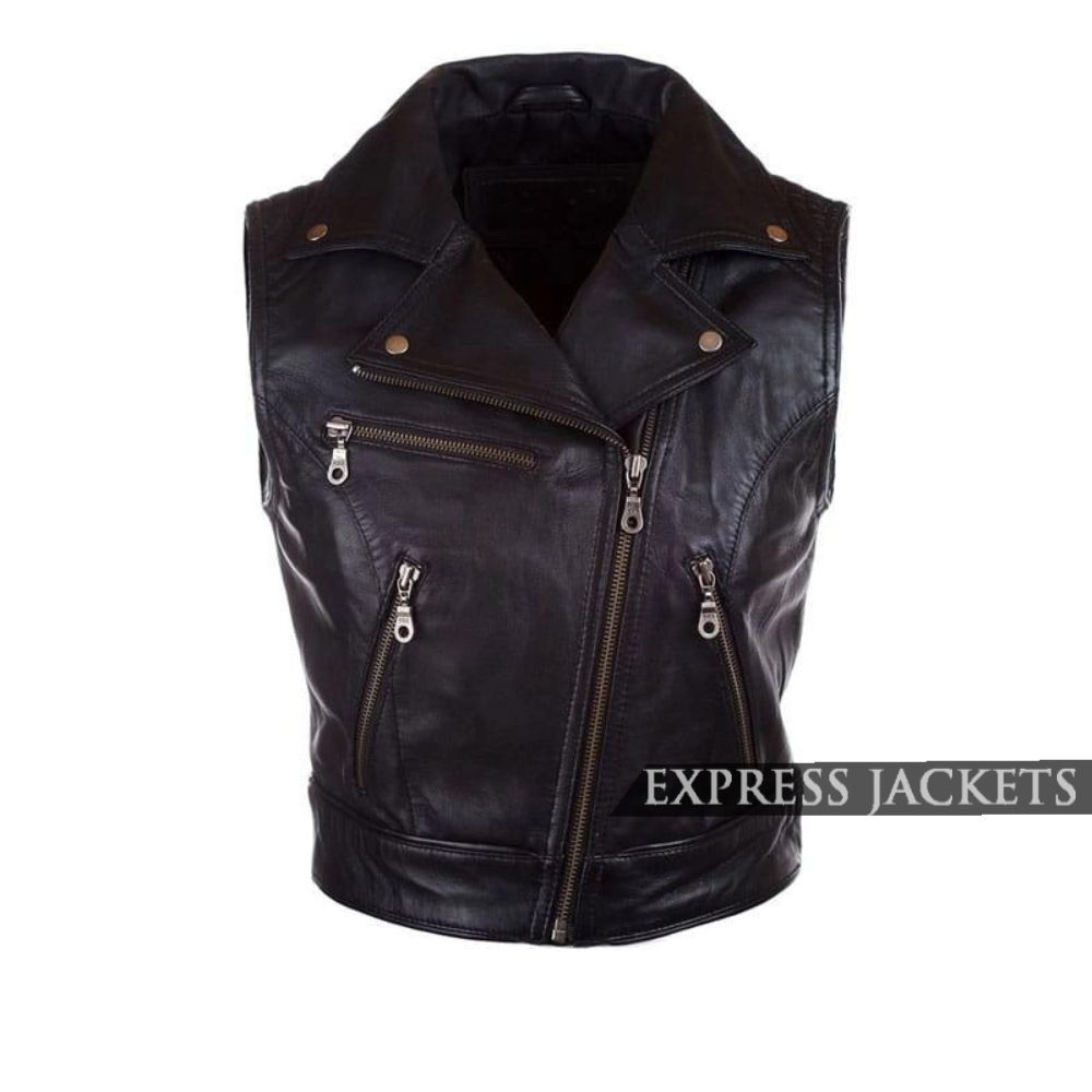 Women’s Black Leather Biker Vest