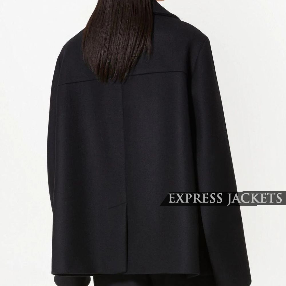 The Women’s Black Bow-Detail Double Breasted Woolen Coat is the ultimate outerwear skirt piece for any cold weather outfit. What an elegant and warm piece! It is a tailored peacoat made from high quality wool fabric, hip length and double breasted front with sparkling buttons and notched lapel collar. The bow detail and feminine detail can be at the back or at the cuffs (the cuff option also being an option and hence the style option), who could resist a bow! A peacoat brings all the fashionable functionality with buttoned strap cuffs and slanted front pockets. It’s fully lined with viscose that lies flat and with length of coat, can even be layered beneath. The options for where you choose to wear your peacoat are endless, whether it a day on the city sidewalks, or a night get together for fine dining, you can’t go wrong with your peacoat. Once you find it, it is a classic design piece that you will have forever in your wardrobe! You can’t go wrong with the final touch of a cashmere fray scarf!