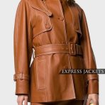 There is a huge variety of designs in the winter clothing section of brands, some are affordable and some are out of a commoner’s range. At Express Jackets, everything is available within your budget, we take care of the stitching and sizing, and our material is always high-quality and this builds strong coordination between the customers and the website. Enjoying freezing weather is not a big deal if you have a good-looking and versatile coat in your closet. This Women’s Brown Belted Leather Coat is coming to set your stylish looks. It is the product of top-notch leather with the attachment of viscose fabric, as the combination of these two materials always works for comfiness and warmth, so, we always provide it. The outer layer has a unique pattern from the backside, which separates the portions from the back to the front. The sleeves are full and have belted cuffs. The waist belt and buttons on the front create a secure look and are practical against winds. A stylish collar and medium length of the costume, are incredible features to be discussed.