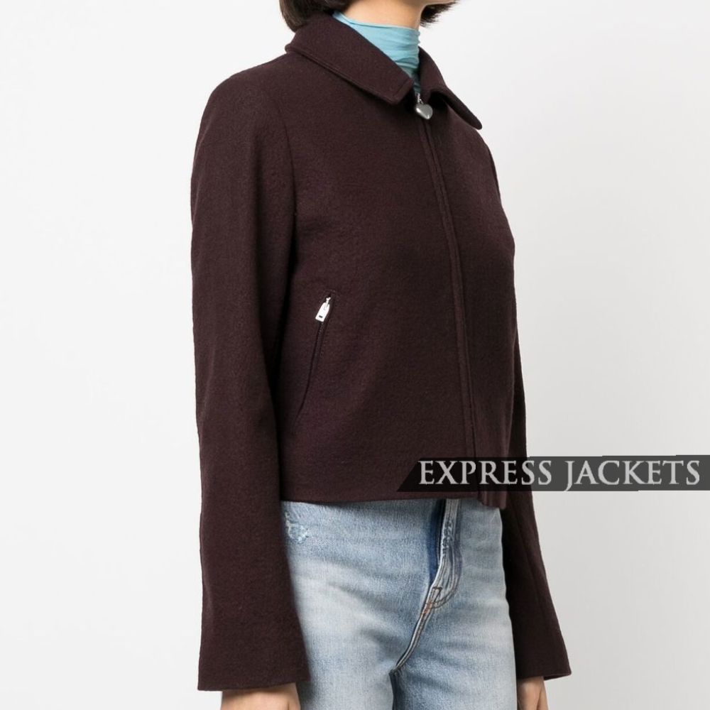 Women’s Burgundy Zip-Up Crop Woolen Jacket