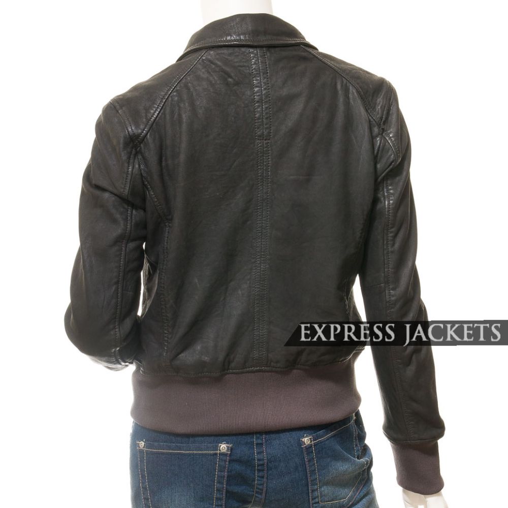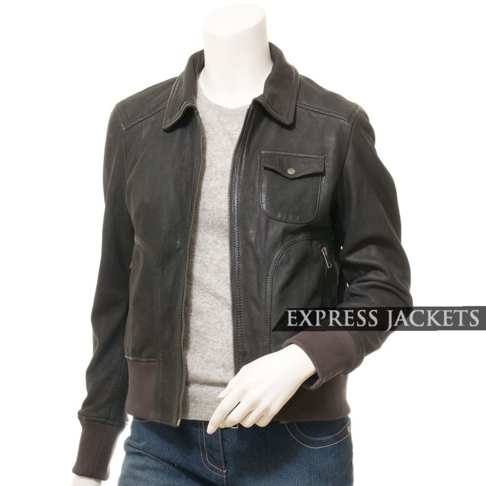 Women’s Charcoal Leather Bomber Jacket combines classic bomber style with a modern edge in a chic and feminine way, for the woman who wants attitude and comfort from the clothing. Made from durable real leather—a faux leather version is also available—the jacket has a simple charcoal gray color that complements most outfits. It features a classic shirt-style collar, zip-front, and rib-knitted hemline and cuffs for a close, flattering fit. Soft viscose lining for all-day wear comfort, and functional zipper pockets for a utilitarian twist on this fashion item.