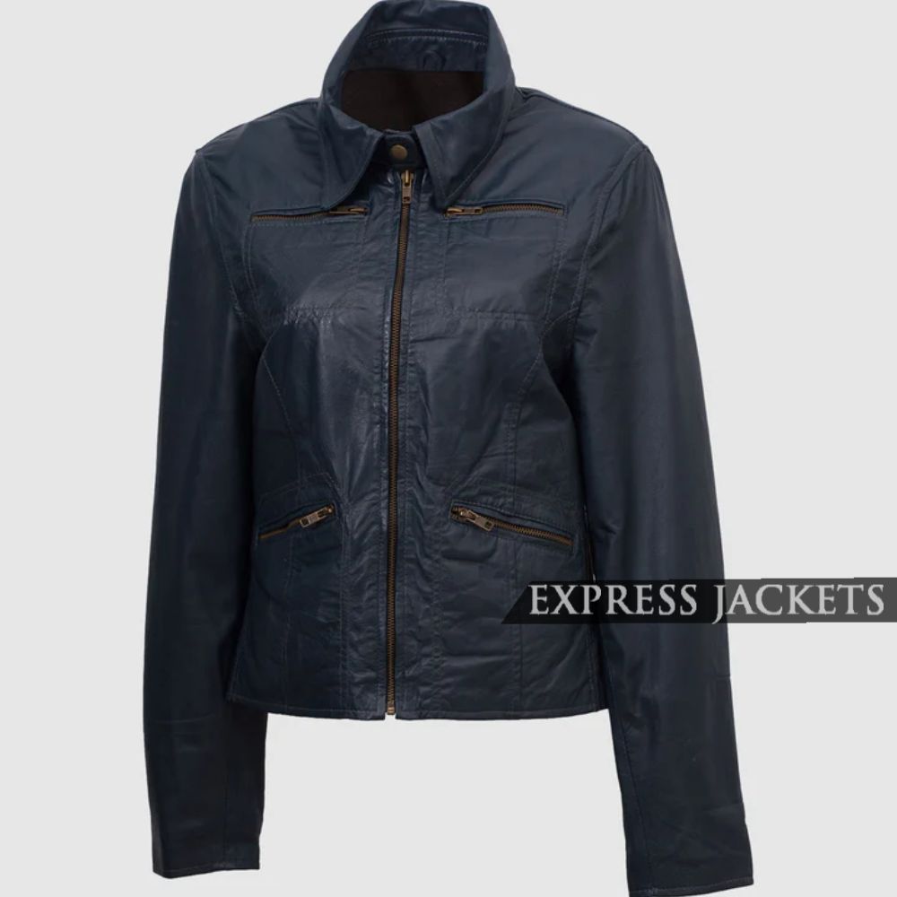 This Women’s Dark Blue Cowhide Leather Jacket is a unique twist on the classic biker jacket with a fashion season return that is designed to take your closet to the boldest level imaginable, while still somehow appearing timelessly edgy. Made from real cowhide leather, this jacket has a rich lapis blue finish with a cropped style sitting just at your waistline, enhancing your shape in a modern-chic way. The jacket has a front zip fastening, the classic biker lapel collar and a slender finish; the jacket has luxurious/street ready quality.