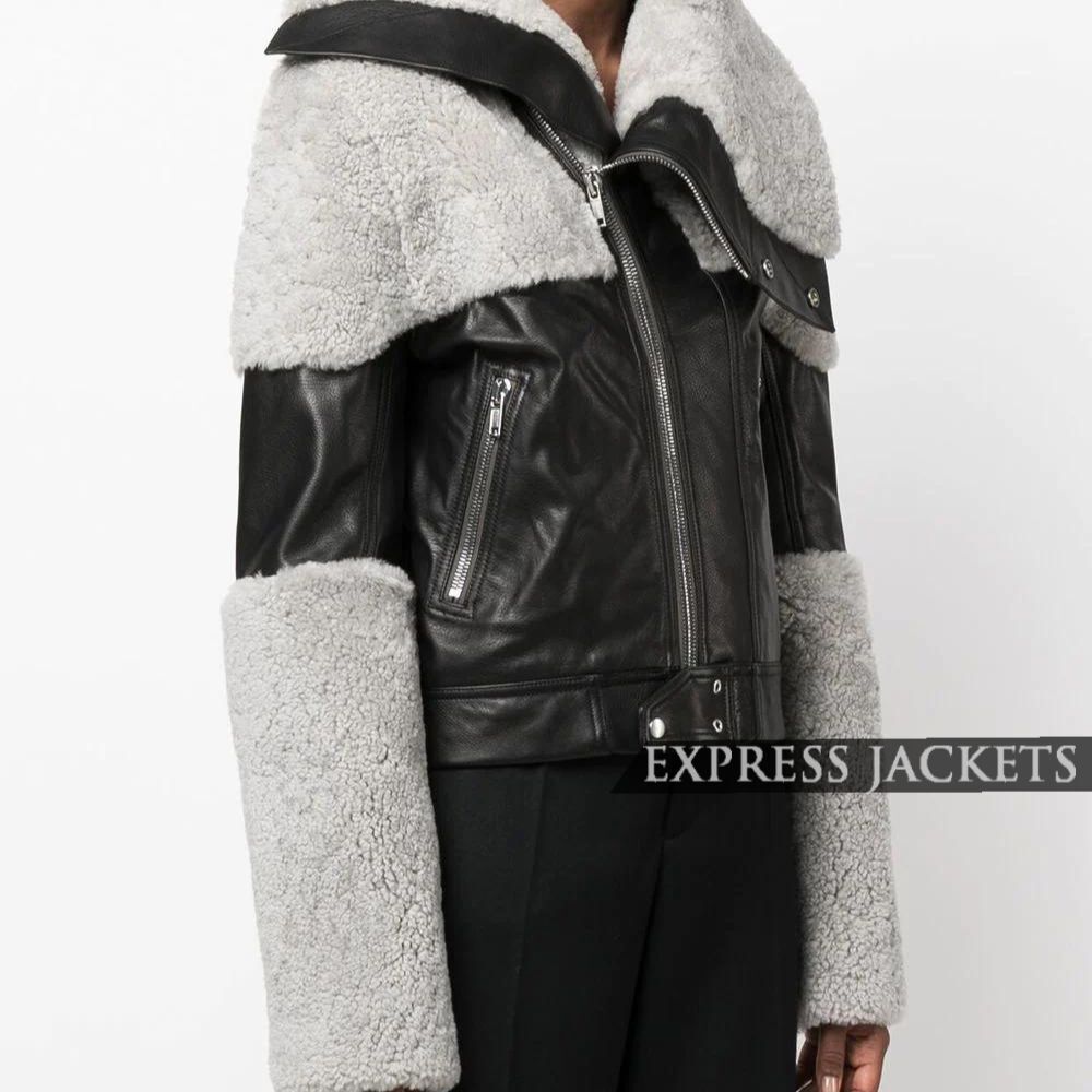 Be the first to review “Women’s Grey Shearling Black Leather Jacket” Cancel reply