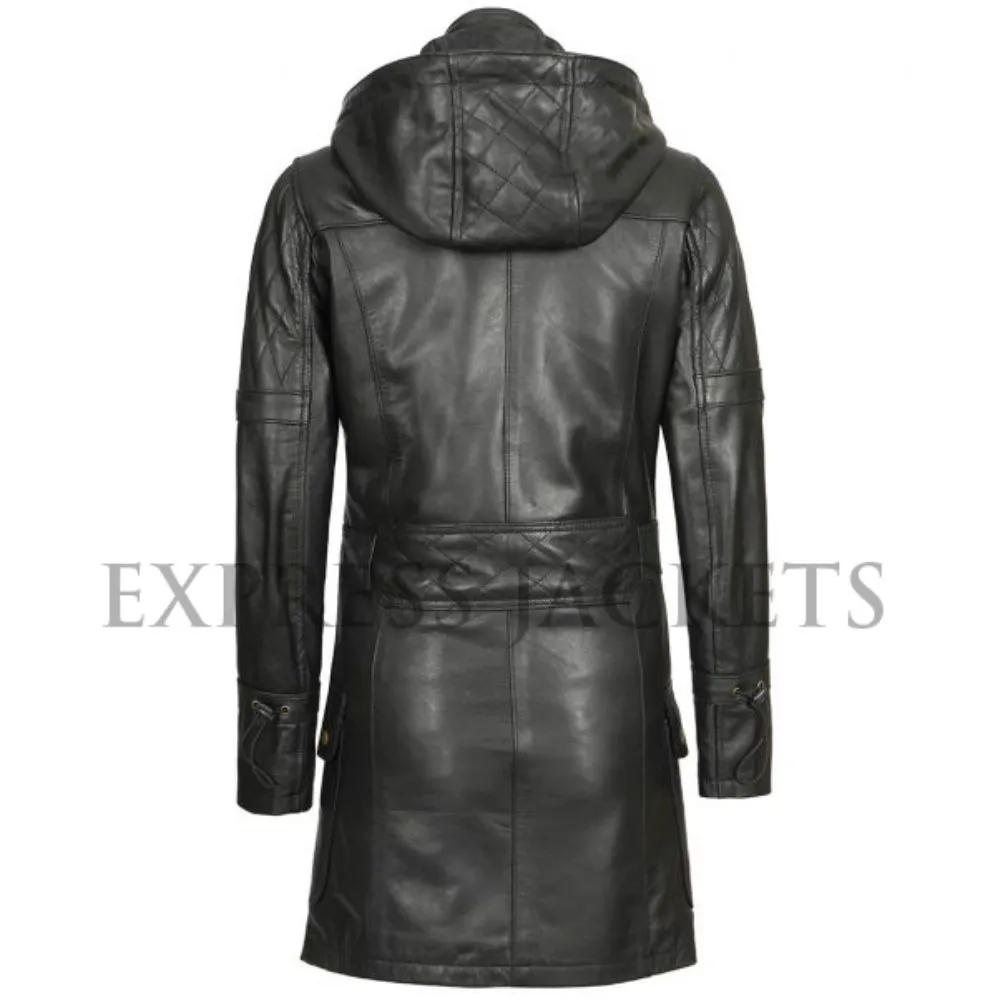 Effortless style meets unmistakable comfort in the Women’s Black Leather Coat; it combines style-driven elements with functional and practical ideas seamlessly. The Women’s Black Leather Parka Coat has real leather with a removable hood, quilted shoulder pattern, and stand-up collar to add volume to your silhouette. The horn toggle buttons with leather loops give the coat an understated vintage appeal, and the zipper pockets shall never go out of style. Each coat is lined with soft viscose. Both design aspects deliver warmth and comfort on cold days. The Women’s Black Leather Parka Coat is even available in faux leather for those that take a cruelty-free view on things.