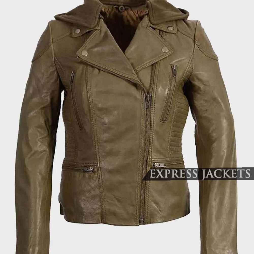 Women are also the riders and there are millions of fans who take interest in the competitions if some of them can’t make it possible, they love to adopt the bold styles of their favorite motorcyclists. In fact, the leather jacket of a motorcyclist is the most captivating thing in someone’s personality. The upper is always very useful for hangouts and casual styling. You can check this Women’s Olive Motorcycle Leather Jacket. The olive color is the newest thing which is usually not available in everyone’s wardrobe. The leather makes sure security as we have utilized high-quality material with viscose lining. The detachable hoodie is a perk for cold weather, and you feel warm from head to waist. The top wear comes with front asymmetrical closure, full sleeves, and pockets. The neat stitching of this top layer is attractive and instantly catches the attention of others. Four outside zipper pockets have been designed in vertical and horizontal positions, which make it a creative piece of the latest fashion.
