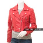Motorcycle Style Women’s Red Leather Peplum Jacket