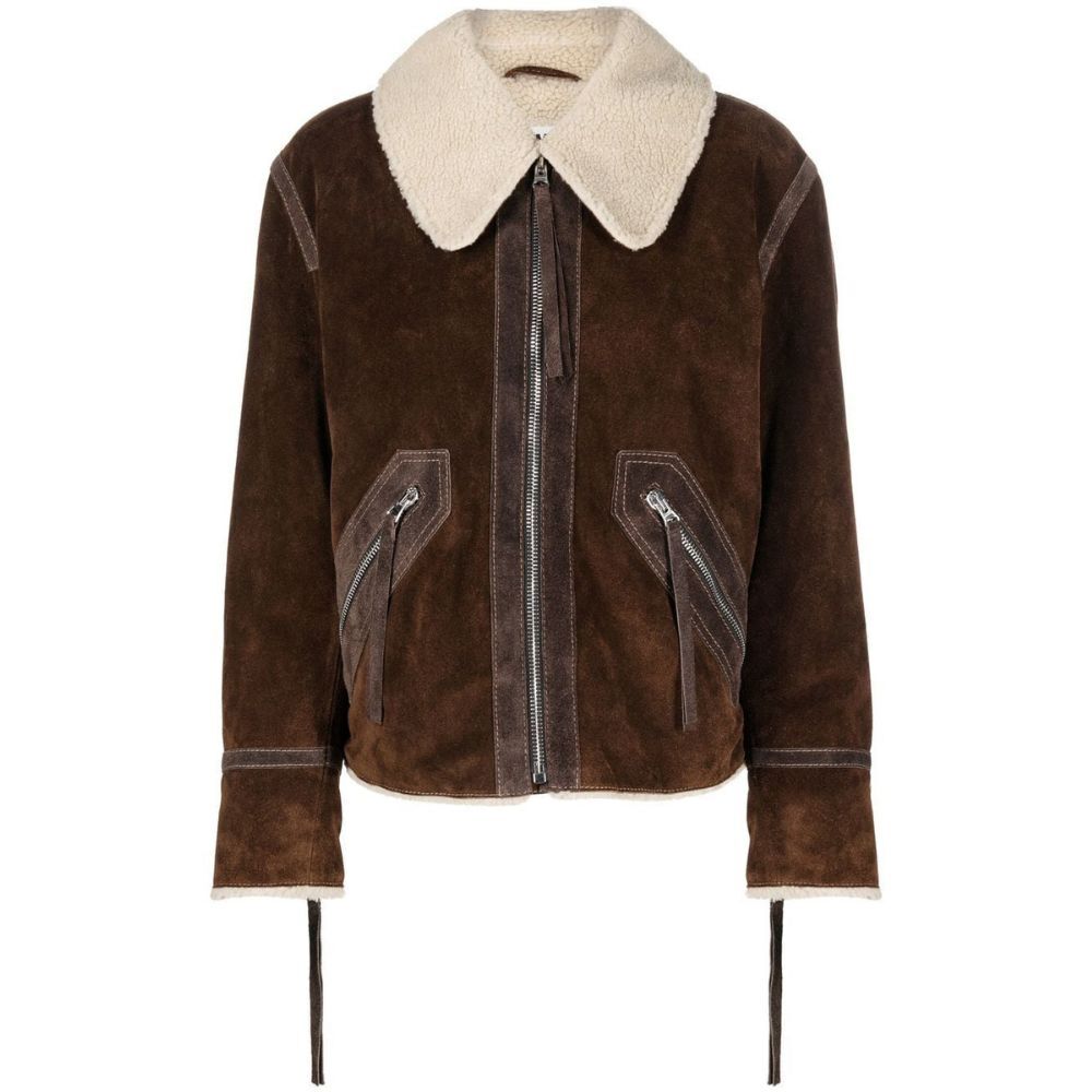 Women’s Brown Shearling Collar Zipped Jacket
