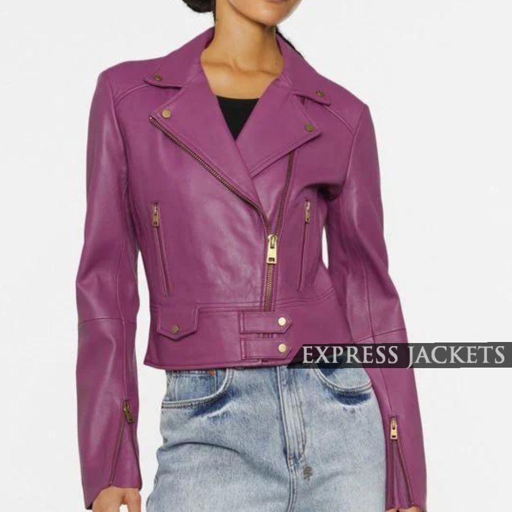 Women’s Sheepskin Purple Leather Cropped Jacket