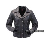 Awaken your inner badass with the Women’s Black Studded Leather Biker Jacket – a true statement jacket for all the brave fashionistas! Made from quality genuine or faux leather, it features a cool-to-the-touch body with asymmetrically zipped shut, lapel style collar studded accents, for a bold, rocker style moto look! The studs continue down from the collar through to the shoulders and sleeves for added edge and flair! Aesthetically, the jacket is also comfortable with a fully lined soft viscose lining, and multiple outer zipped pockets help to keep your hands warm while remaining practical and without looking out of place in this polished jacket. Dress it up with some jeans, or place it over a cute dress, this jacket is edgy enough to elevate elegance day or night!