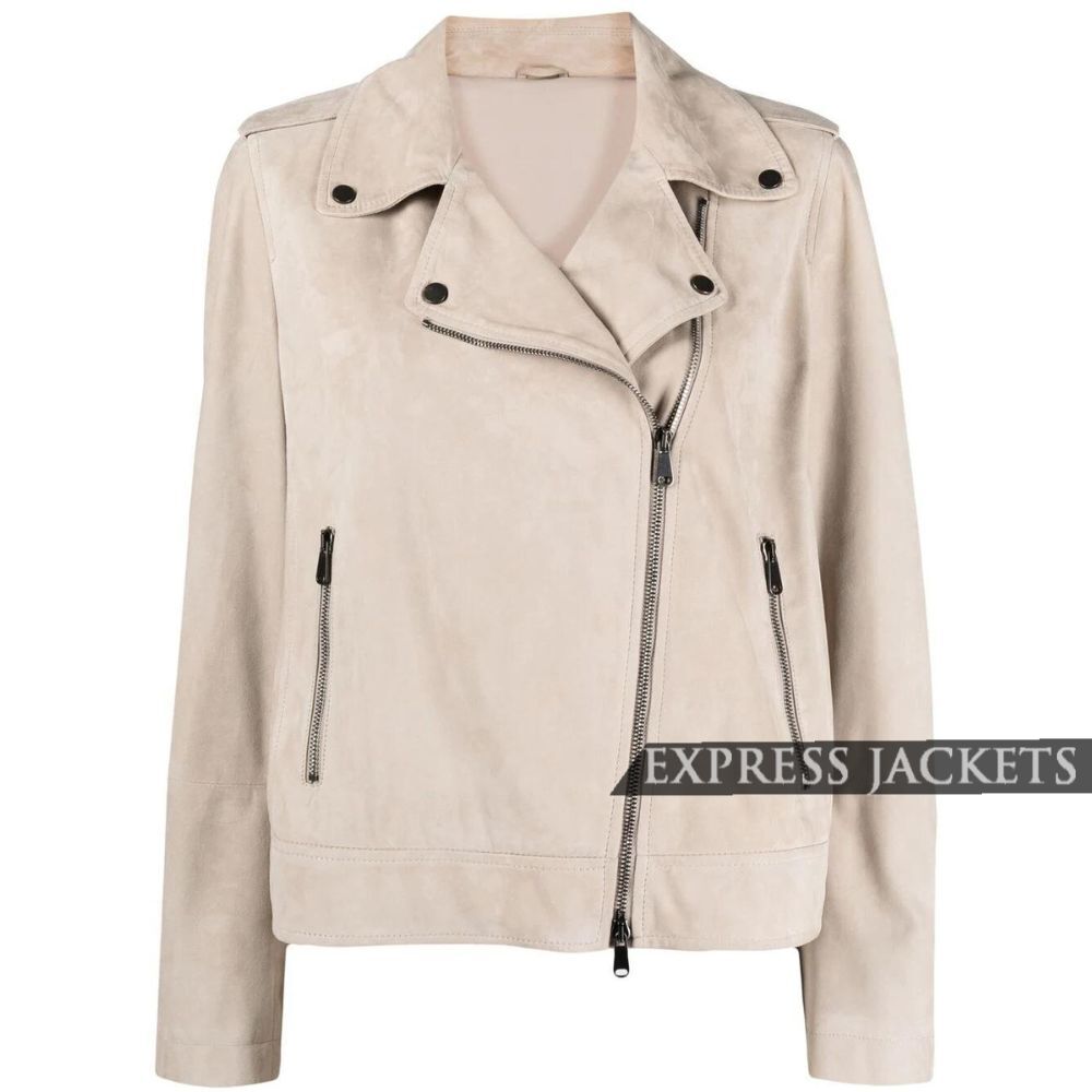 Women’s Beige Suede Leather Biker Jacket