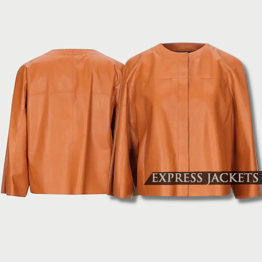 Women’s Tan Collarless Leather Jacket