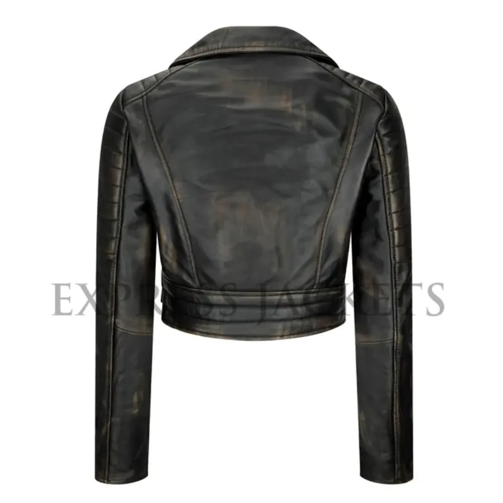 Edgy Elegance: Ladies Crop Biker Jacket