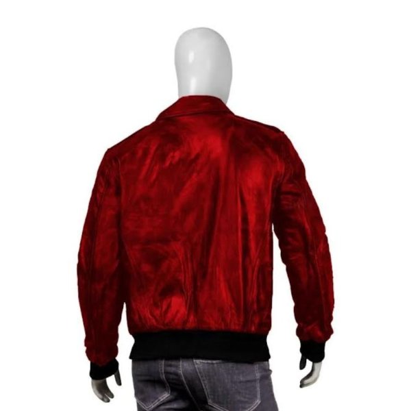 Mens Bomber Red Leather Jacket
