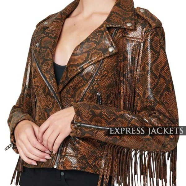Price range: £110.00 through £170.00Women’s Snake Skin Fringe Leather Jacket
