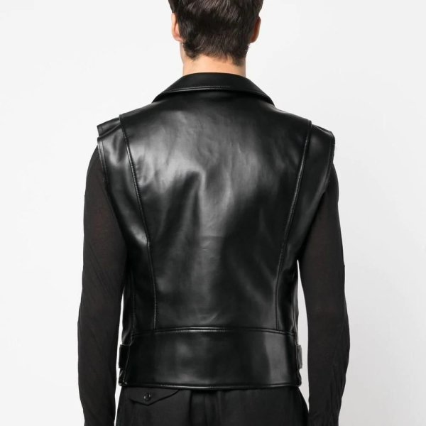 Men’s Black Faux Leather Belted Sleeveless Biker Jacket