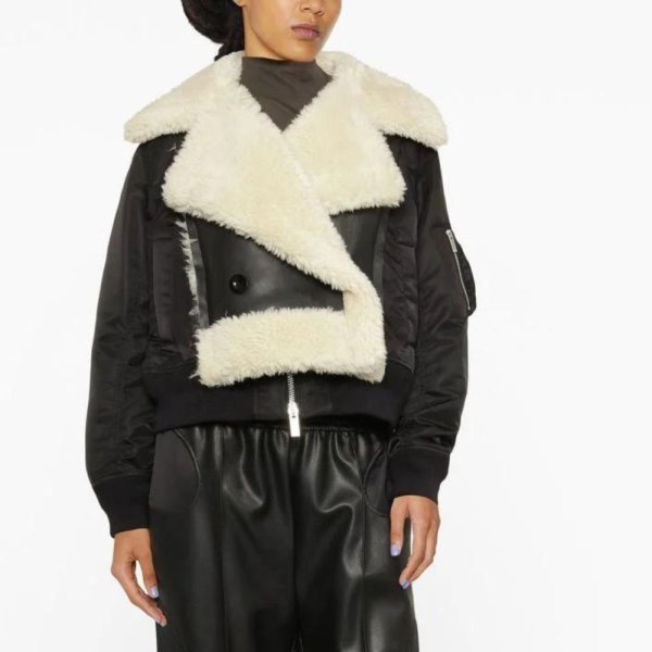 Price range: £138.00 through £195.00Women’s Black / White Wool-Trim Faux-Leather Jacket