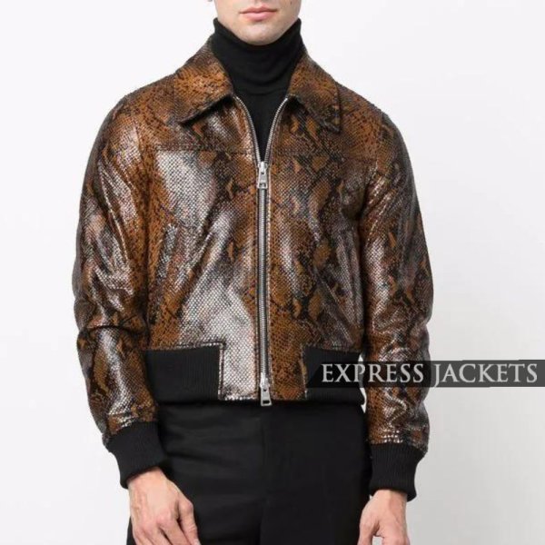 Price range: £98.00 through £128.001Men’s Snakeskin Effect Zip-Up Cropped Jacket